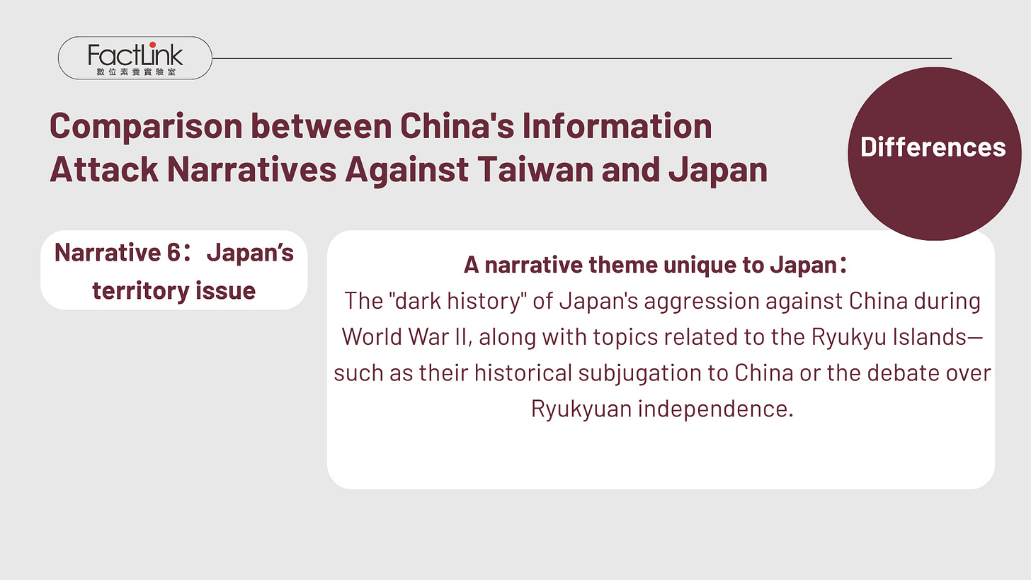 Finding Three: Similarities and Differences in Information Warfare Narratives Targeting Taiwan vs. Japan